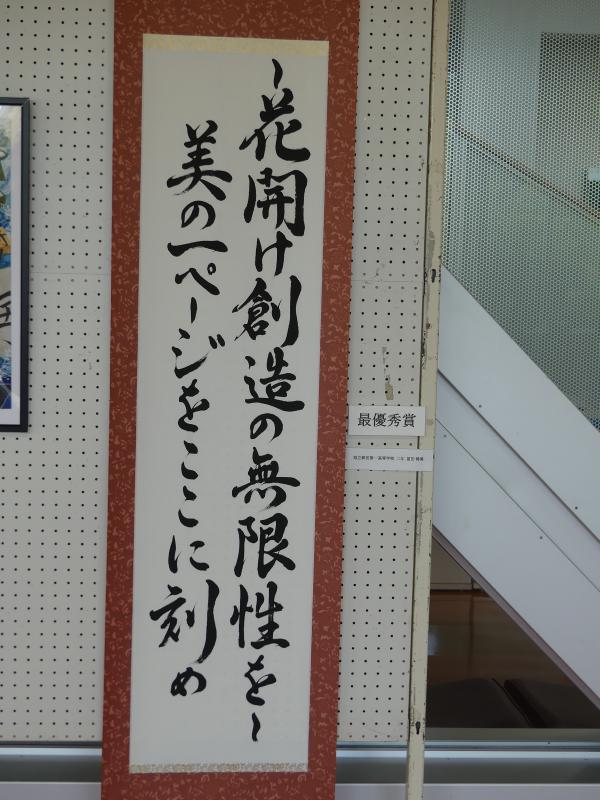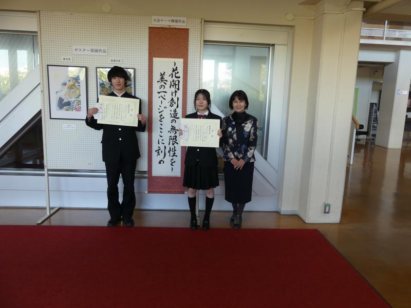 また、この大会テーマの揮毫作品が募集され、本校生徒の冨田稀希さんの作品が最優秀賞に選ばれました。