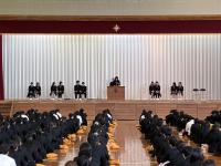 始業式が実施されました。生徒たちは少し緊張した面持ちで担任の先生の自己紹介を聞いていました。前期生徒会役員任命式も行われ、これから学校の代表として頑張ってもらいたいです。