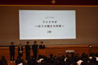 本日、総合的な探究の時間の成果を共有する「探究発表会」を開催しました。代表4グループが全校生徒とカゴメ株式会社の社員の方々の前でプレゼンテーションを行い、プロの視点から直接講評をいただく貴重な機会となりました。