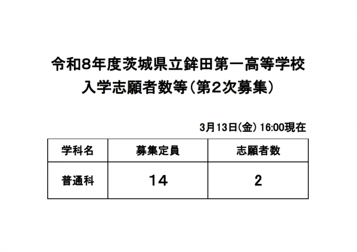 令和8年度入学志願者数等(第2次募集)